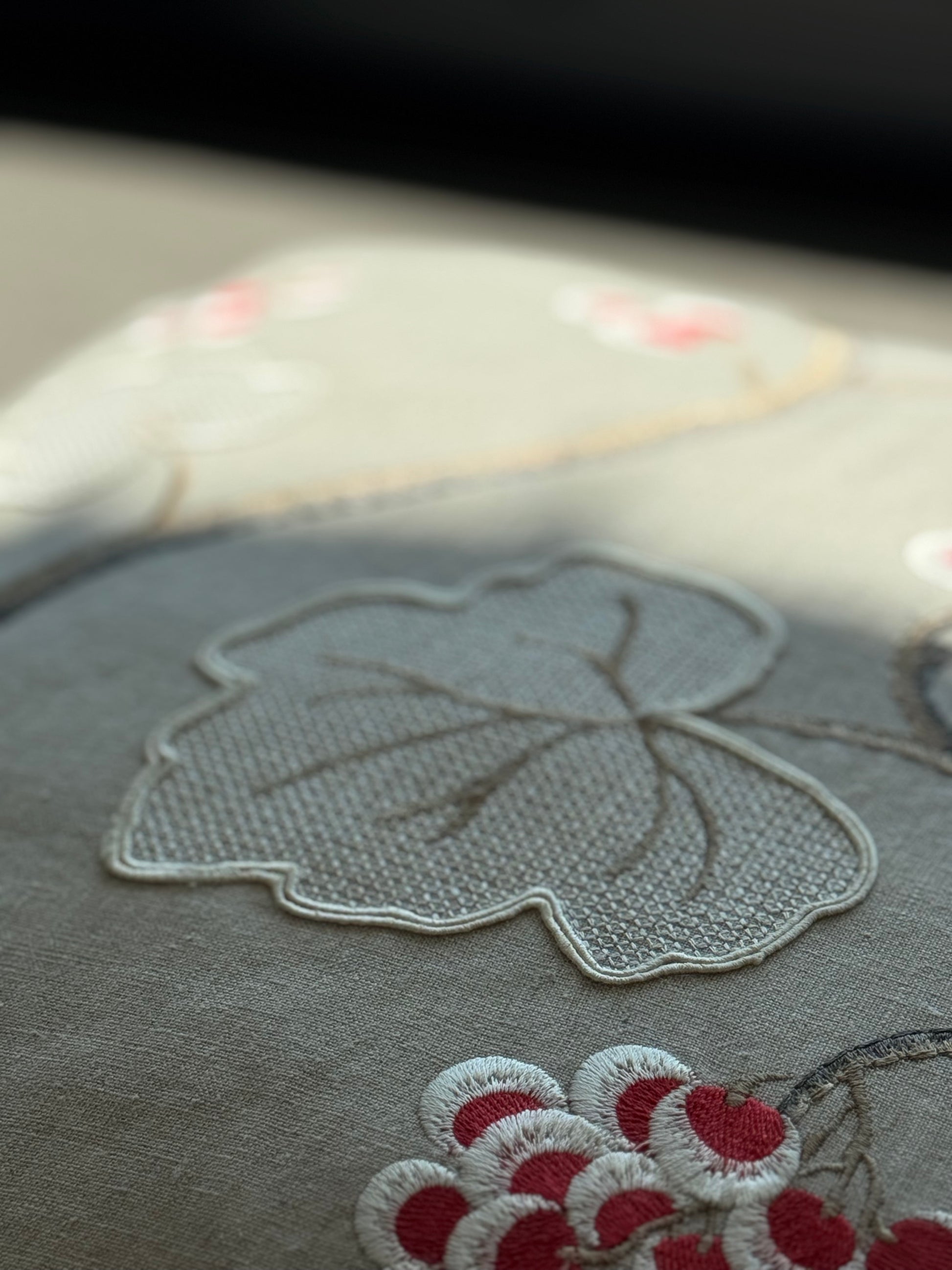 “Leaf & Berry” – embroidered linen cushion · Limited Edition · Martin Gabriel