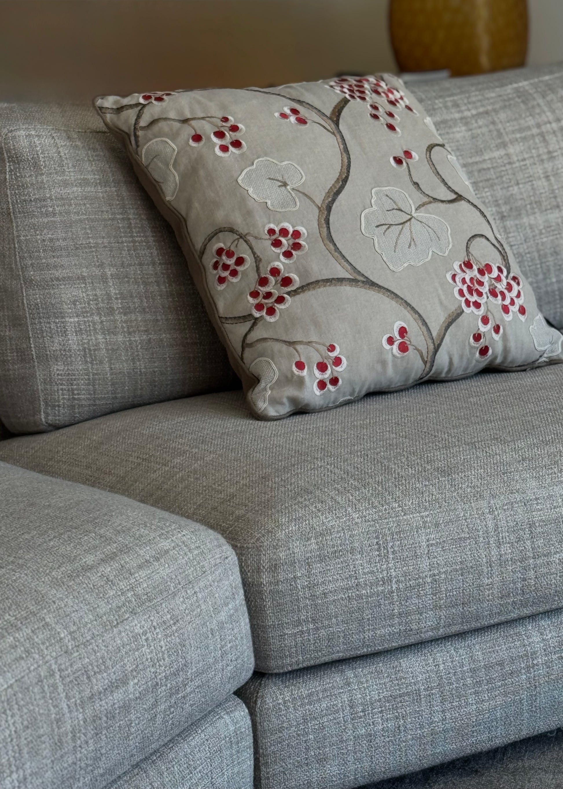 The “Leaf & Berry” cushion is an elegant unique piece from the Martin Gabriel Collection.