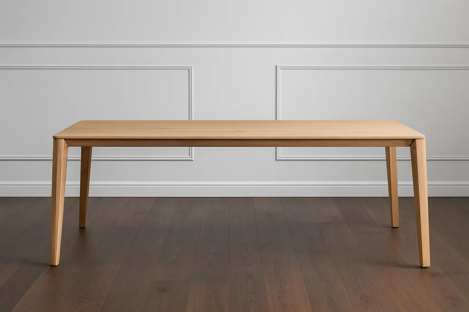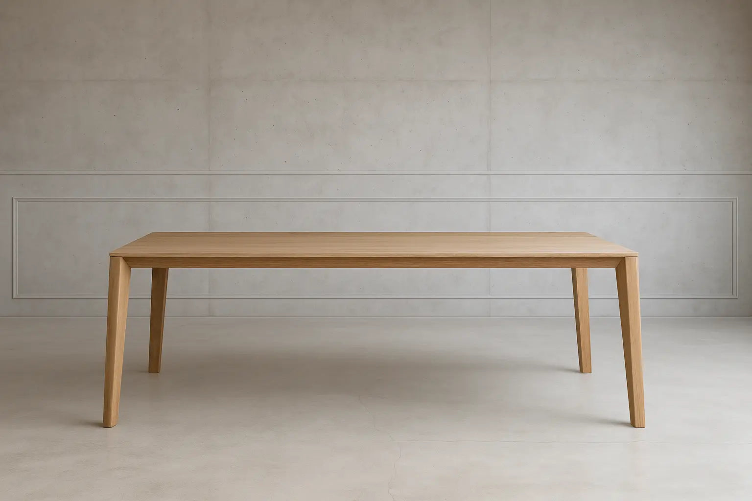 Dank der integrierten Metallverstärkungen im unteren Bereich bleibt der Tisch stabil und formtreu, selbst bei größeren Formaten bis zu 300 cm Länge. Diese Kombination aus technischer Präzision und natürlicher Schönheit macht die ARCO zu einem eleganten Mittelpunkt jedes Esszimmers.