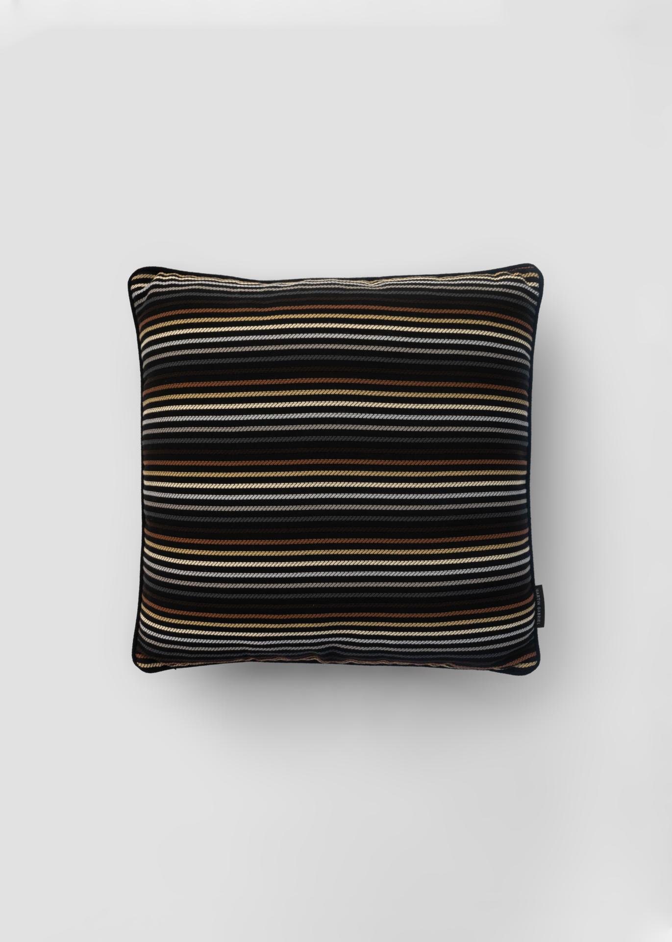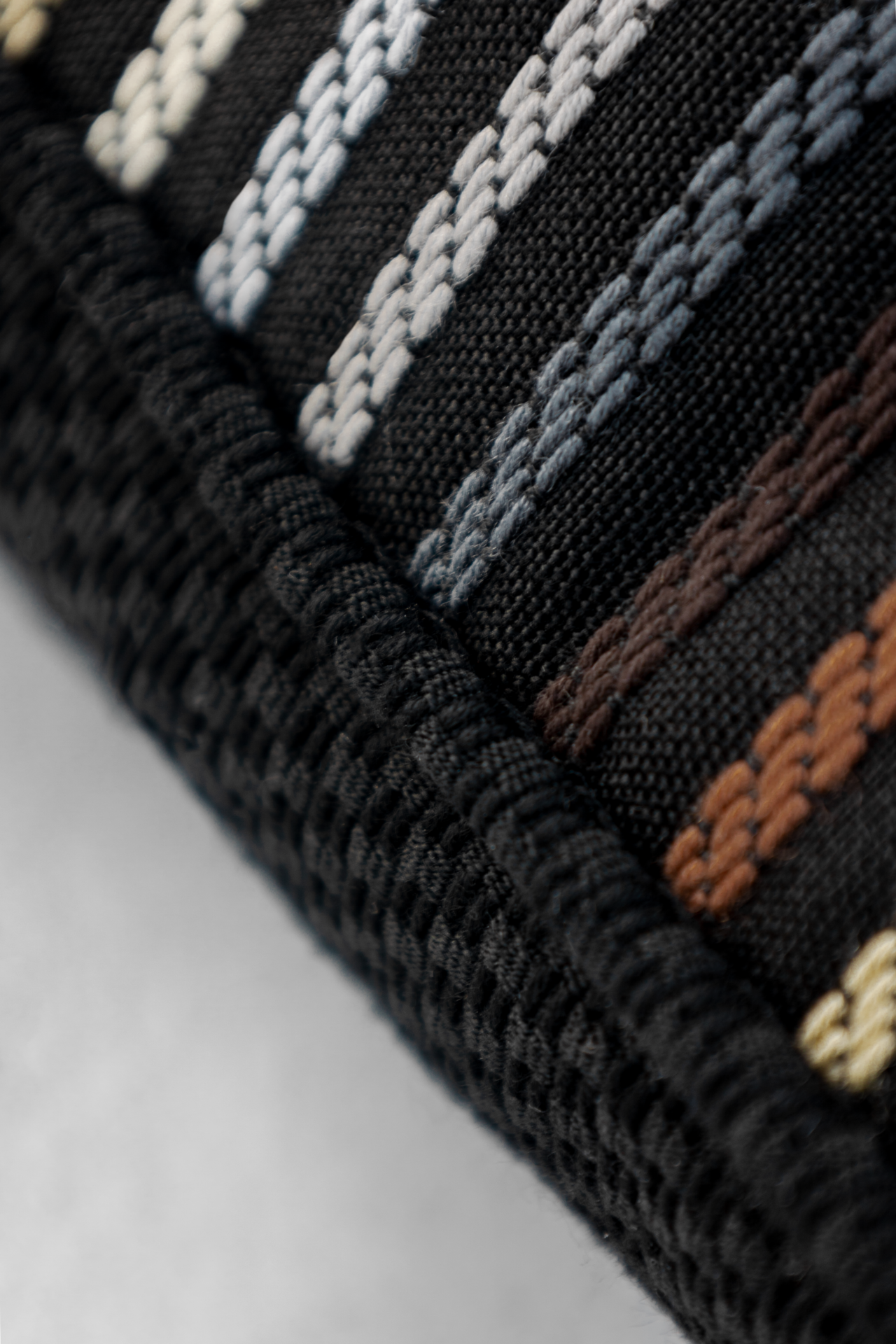 Ce grand coussin (60 × 60 cm) séduit par son motif rayé moderne aux tons naturels – subtil, apaisant et pourtant étonnamment efficace. Il s'intègre parfaitement à tous les intérieurs : du balcon urbain à la grande terrasse. Sa bordure à franges marron clair, réalisée à la main, souligne son design haut de gamme et son caractère artisanal.